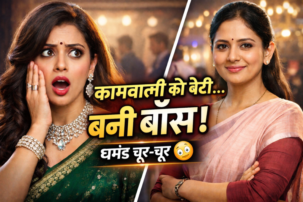 जब पार्टी में लगभग सारे मेहमान आ गए तब किसीने सबसे नए बॉस का परिचय करवाया। काजल ने देखा कि थोड़ी देर पहले उसने जिस शालिनी को एक कामवाली की बेटी समझकर नजरंदाज किया था वही शालिनी उसके पति अमन की नई बॉस है। काजल को ये जानकर काफी हैरानी हुई। बॉस होकर भी शालिनी इतने सादे कपड़ों में आई थी।
